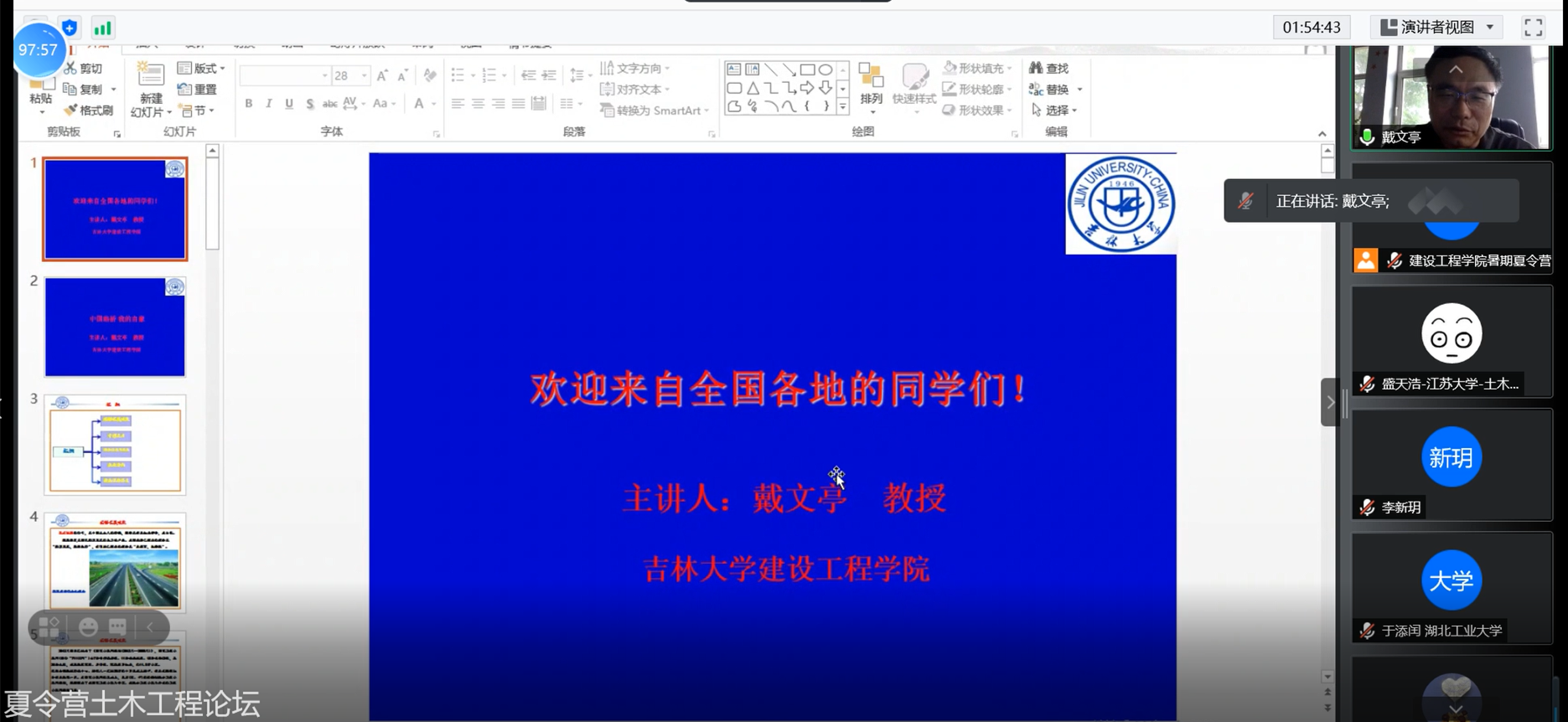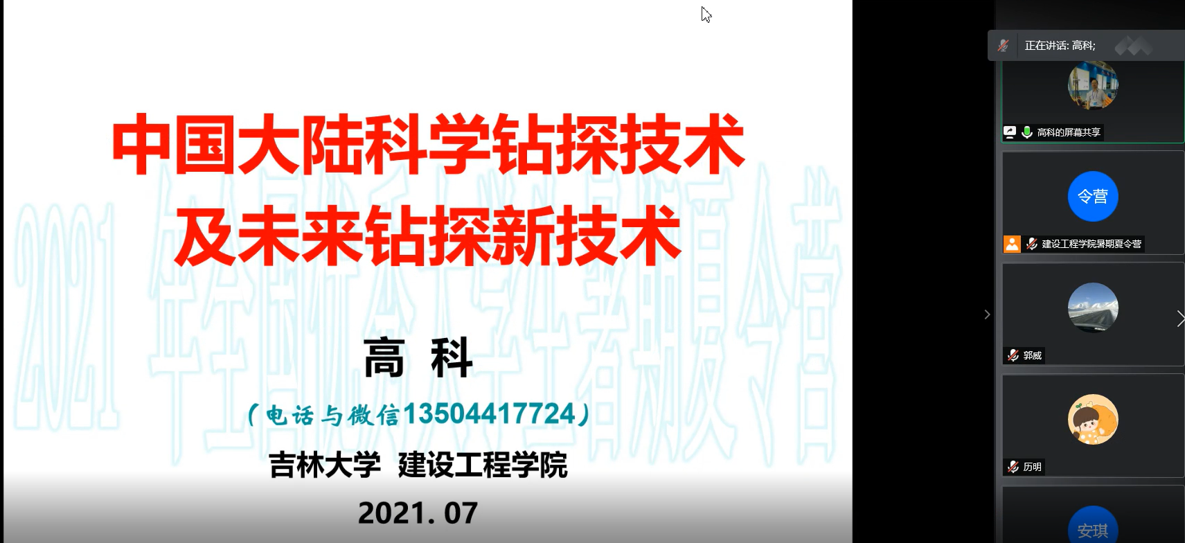 7月10日下午,学院举办地质工程学术论坛、土木工程学术论坛,学院地质工程专业、土木工程专业八位教授分别为营员同学做学术讲座,与营员线上交流。