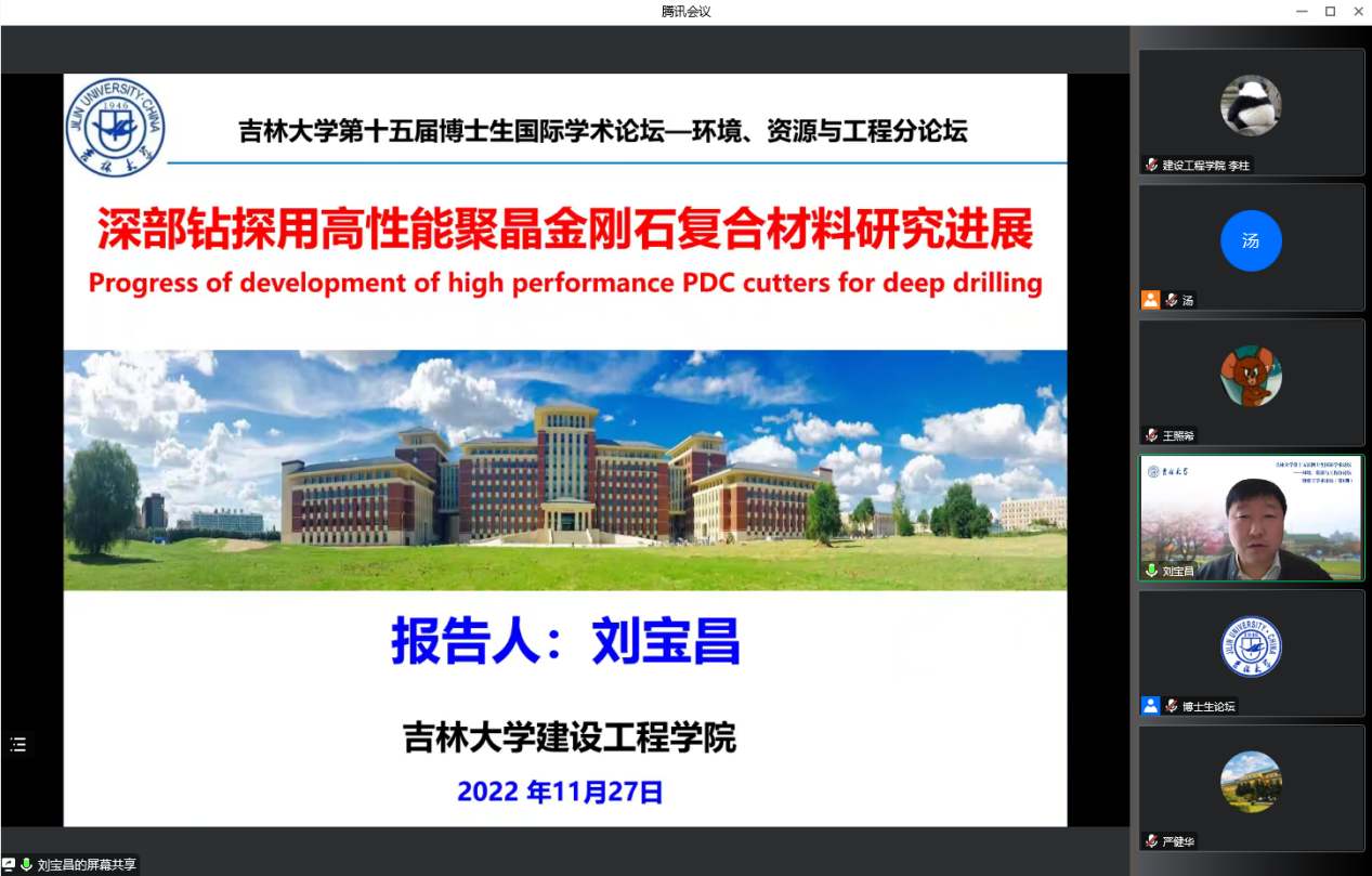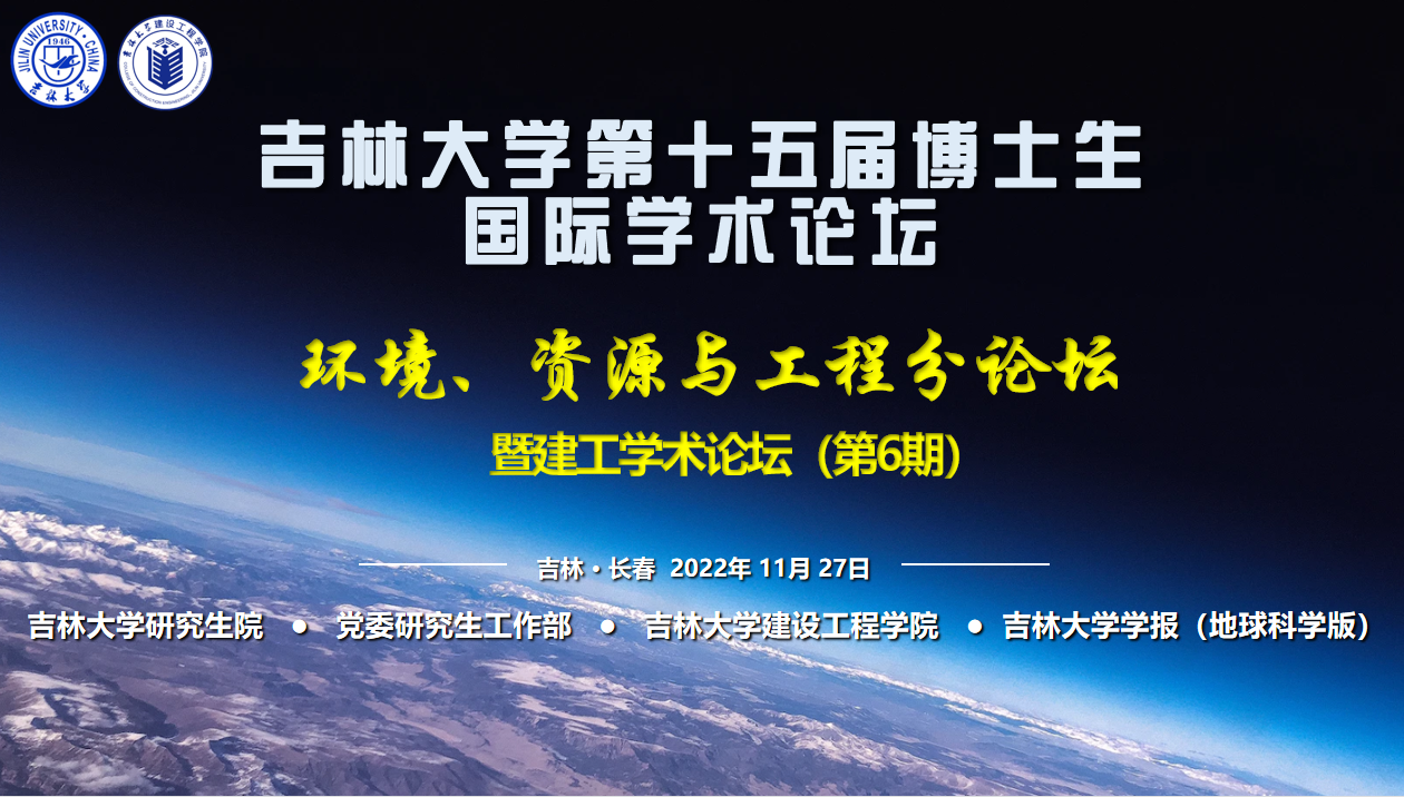 2022年11月27日上午,吉林大学第十五届博士生国际学术论坛——环境、资源与工程分论坛暨建工学术论坛(第6期)隆重开幕。论坛以“创新· 发展·融合——环境·资源·工程的和谐统一”为主题,本论坛由吉林大学研究生院、党委研究生工作部主办,yl23455永利集团承办,吉林大学学报(地球科学版)协办。党委研究生工作部部长兼研究生院副院长赵玥老师、副部长于瑶老师,国际交流科科长董墨老师,吉林大学学报副总编兼地球科学版执行主编邱殿明老师,yl23455永利集团院长郭威教授,副院长张文教授,党委副书记兼副院长闫国栋老师参加了开幕式,yl23455永利集团副院长王伯昕教授主持开幕式。