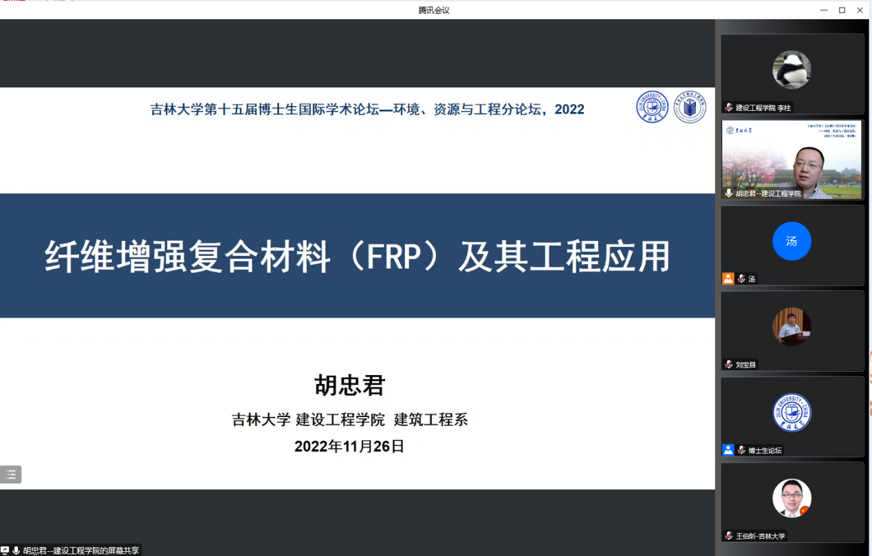 自11月1日分论坛发出举办和征文通知以来,受到了国内校内相关学科博士研究生同学的广泛关注。受近期长春突如其来的疫情影响,本次分论坛遗憾地以线上形式举办,并大幅压缩会期和参与人数。最终经分论坛学术委员会的评议和筛选,共有来自浙江大学、西安建筑科技大学、吉林大学等高校的36名博士研究生获得论坛报告的机会,有更多的博士生同学将在线上收听收看他们的精彩学术报告。