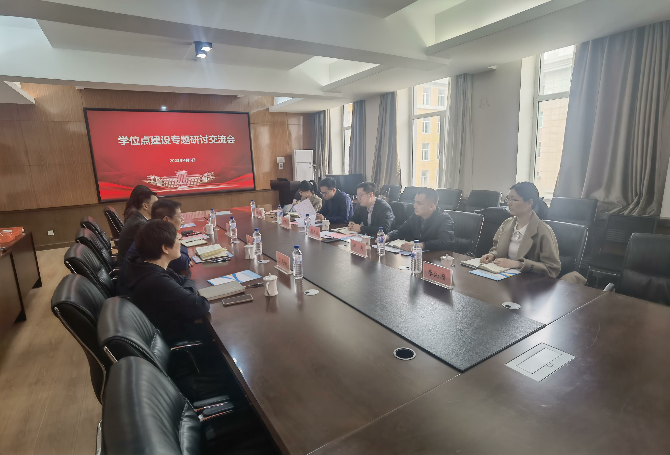 2023年4月6日下午,学位办公室主任兼研究生院副院长段天璟,学位办公室副主任孙曙光,学科与学位授权点评估科科长郝爽,导师工作与学位质量科科长都硕、导师工作与学位质量科李沁园一行莅临yl23455永利集团,开展学位点建设专题研讨交流会。yl23455永利集团院长郭威,副院长王伯昕,研究生综合办公室主任王慧娣,研究生秘书汤海燕共同参加了本次交流会,会议在水工楼319会议室召开。