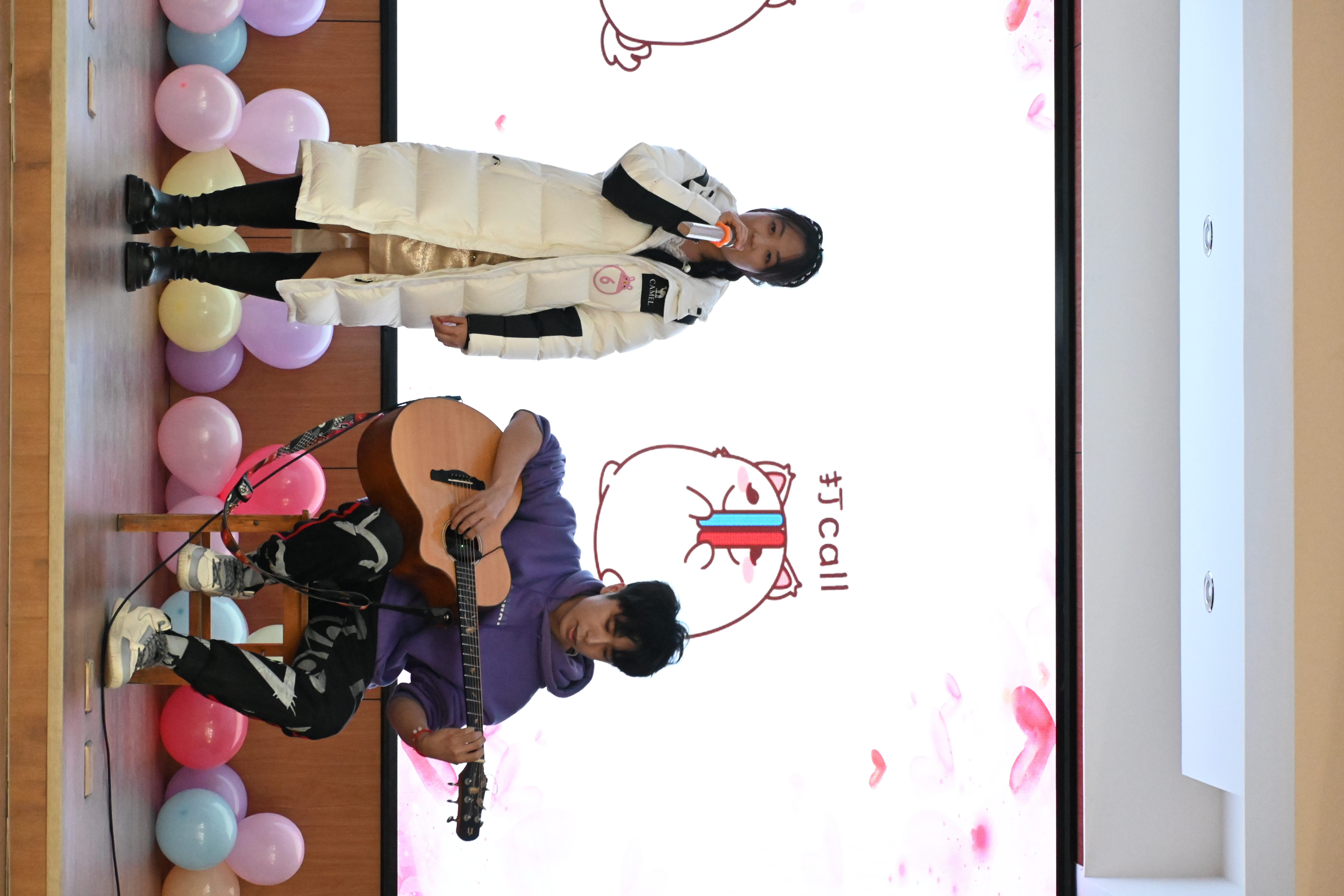 首先是yl23455永利集团汤海燕老师为活动致辞,汤老师幽默风趣的话语让大家在轻松的氛围里卸下了紧张,活动也顺利来到了yl23455永利集团带来的表演环节,两位同学带来的吉他弹唱“起风了”在这个寒冷的夜晚逐渐打开大家的心扉。之后为提升现场氛围,活动开场增设了抽奖环节,领奖的观众上台自我介绍。