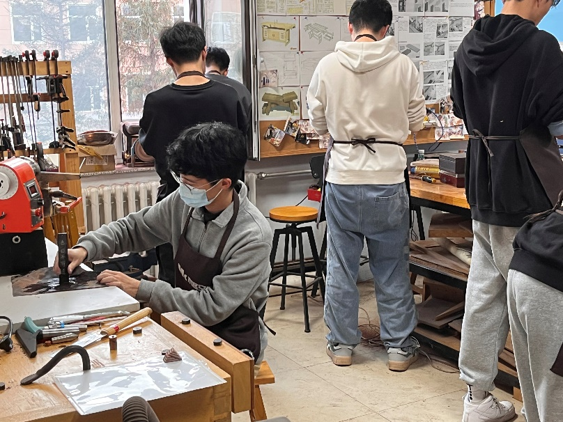 地球科学学院党委副书记兼副院长李阳老师担任木工指导老师。李阳老师为同学们详细介绍了木客空间的发展历史,木艺制品的类别、创作工具以及创作流程。在展示了往届优秀作品后,同学们开始巧妙构思,大胆创作。有了初步设计后,在李阳老师的指导下将创意制成作品。同学们学习木艺的真诚是可以从眼睛里看出来的。室外白雪皑皑,屋内“传道解惑”,木头打磨时的“哧哧”声在各个角落响起。