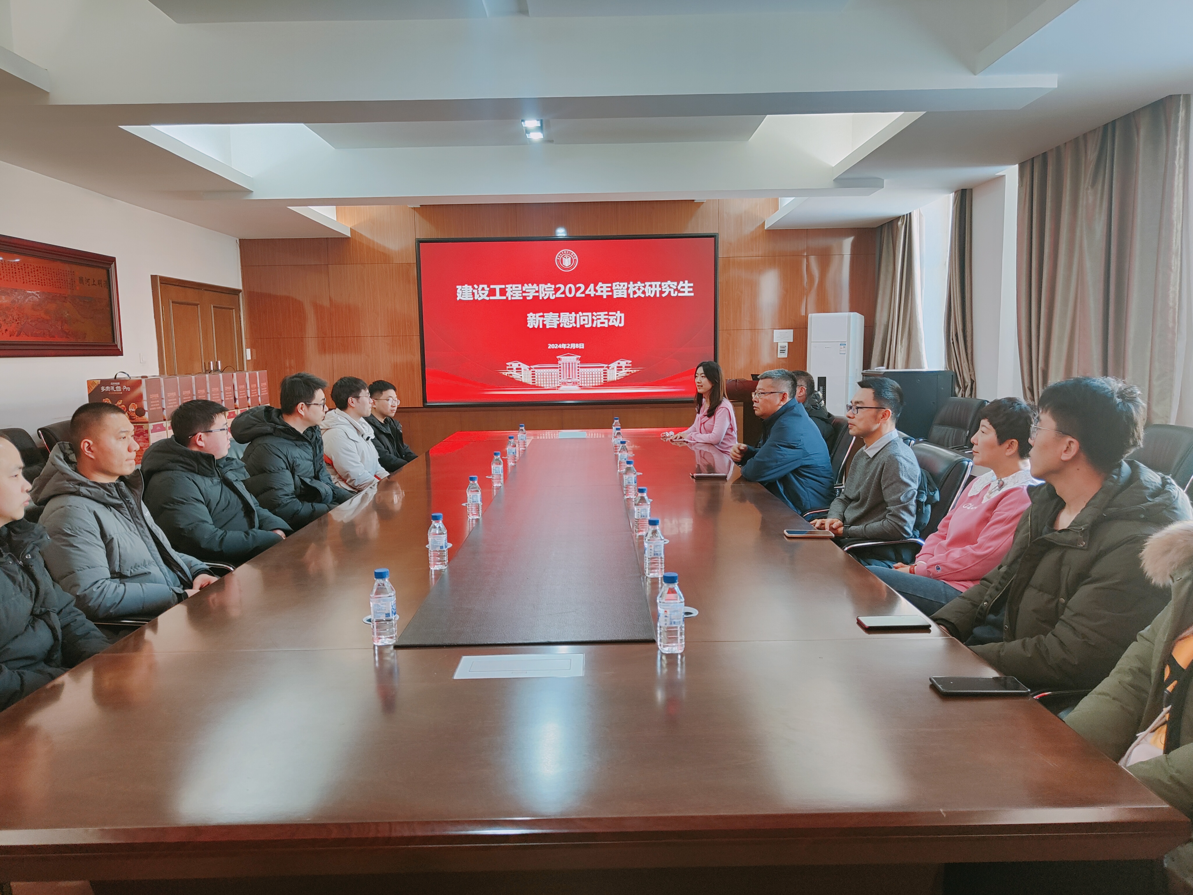 各位老师首先向同学们致以诚挚的祝福,并与大家亲切交流,了解同学们目前的科研、学习生活等情况。党委书记衣长涛叮嘱同学们在合理做好春节规划的同时要提高自我保护意识,多与家长和导师沟通,在校度过一个欢乐且有意义的春节。研究生们纷纷表达了自己的感谢,表示一定会牢记嘱托,在校过一个平安、健康、充实又有意义的假期。