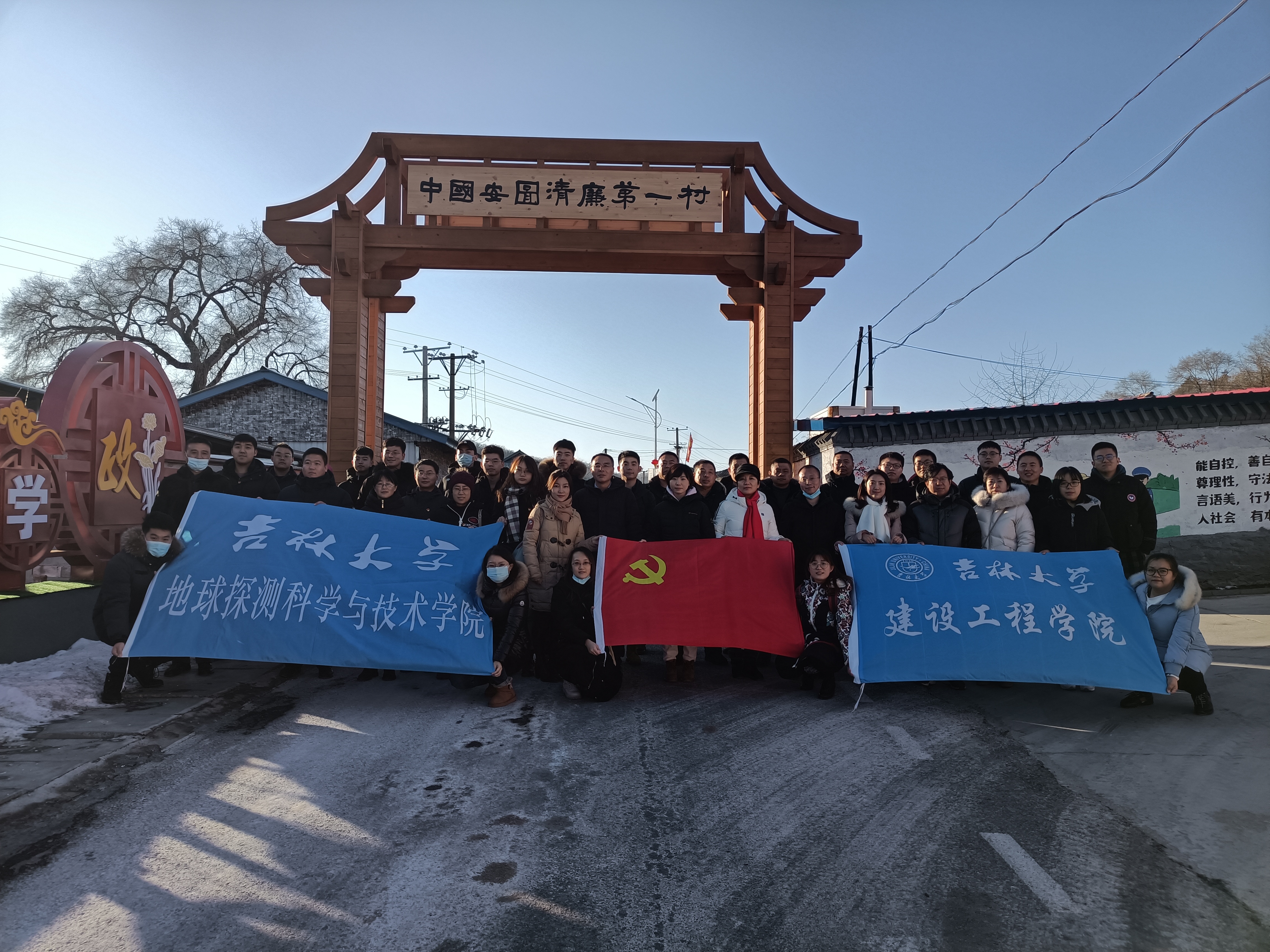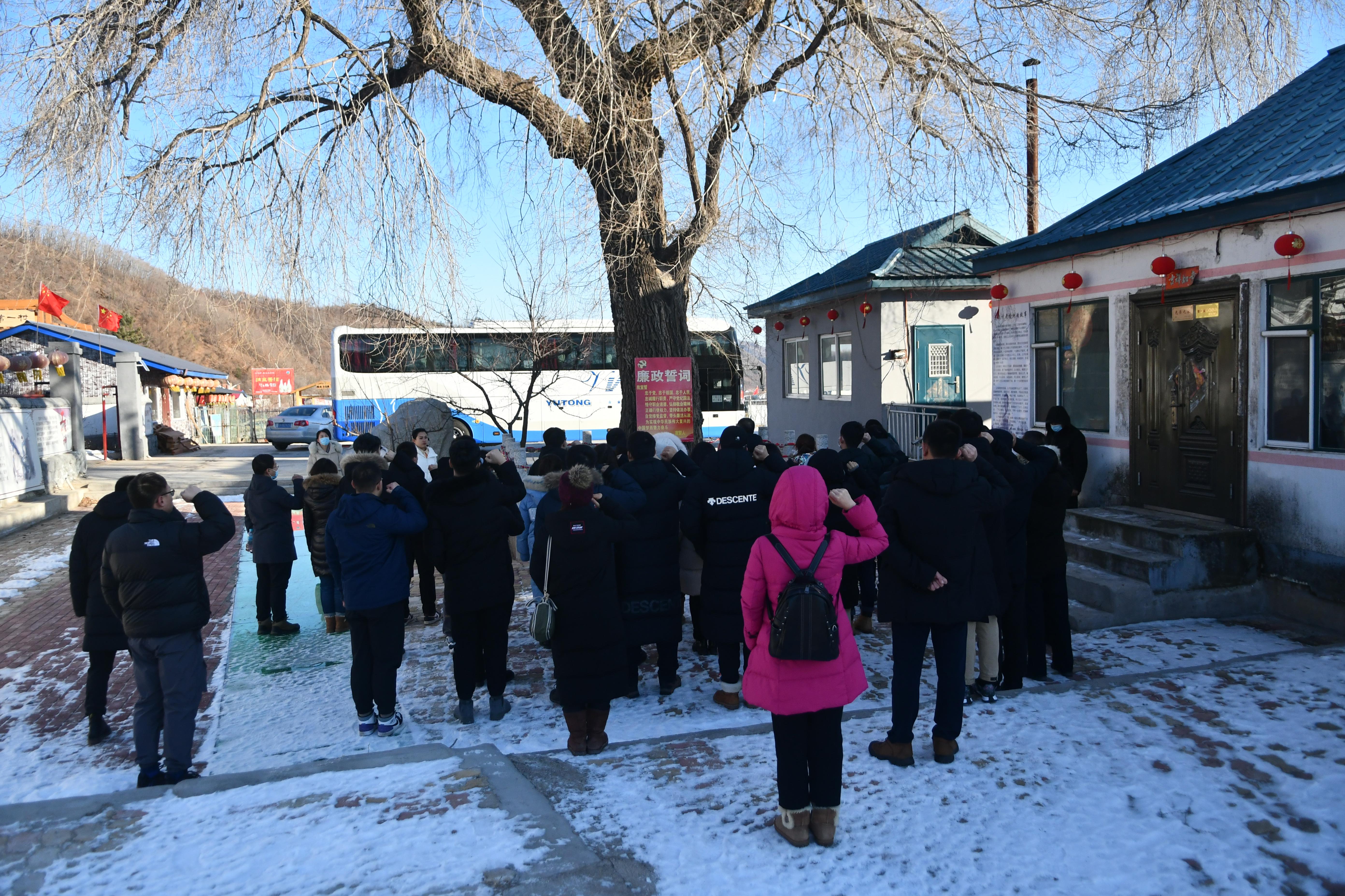 12月5日下午,师生党员赴延边市清廉示范村--安图县,参观了安图清风学堂、清风小路以及当地以廉洁为特色的民宿,感受了安图县人人监督,事事透明,坚决预防和反对腐败,为民务实,不忘初心的民风。百年榆树前,由党委副书记闫国栋带领党员宣读“廉政誓词”,全体党员思想政治受洗礼、坚定了清正廉洁作表率、坚守党纪国法红线的目标。