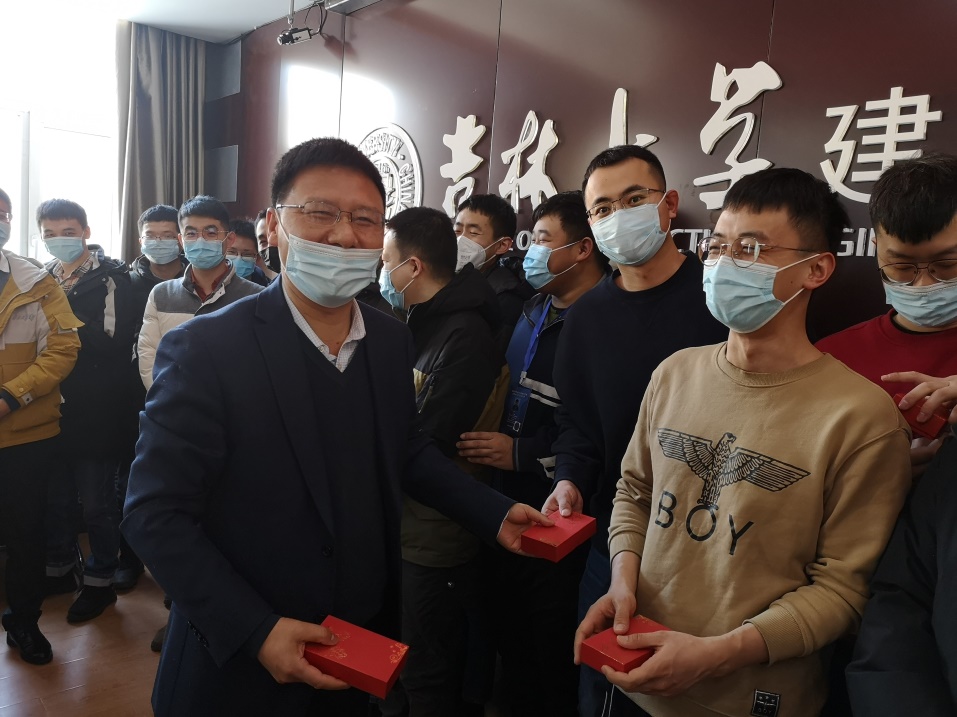 最后,戴院长为留校研究生发放了新春慰问品——建工定制新春“如意U盘”,祝愿留校学生在新的一年乘风破浪,万事可期。