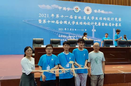 2021年7月9日至11日,第十四届全国大学生结构设计竞赛吉林省分赛区在吉林建筑大学举行,来自吉林大学、吉林建筑大学、延边大学等13所学校的26支代表队参加了本次大赛。吉林大学两支代表队在朱珊老师和郑少鹏老师的指导下,通过近三个月的努力,不断尝试、改进、优化、创新,确定了本届参赛作品的最终方案。在比赛期间,经过三天的激烈角逐,最终顺利完成三级加载,吉林大学“抗压队”获得大赛特等奖,吉林大学“砼话队”获得大赛一等奖。