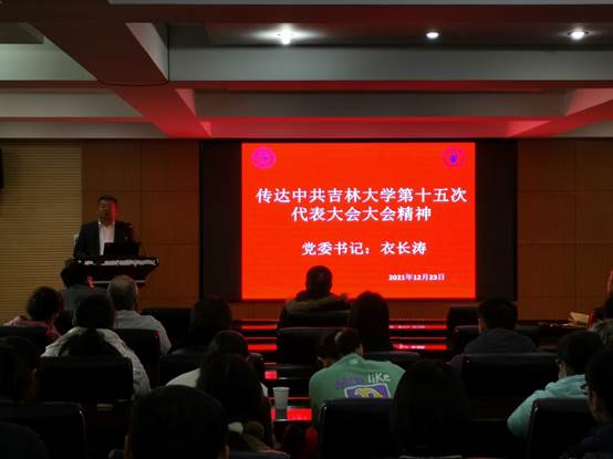 衣长涛同志向与会人员传达了姜治莹书记在中共吉林大学第十五次代表大会上的报告。姜书记在报告中用“十个坚持”全面回顾了学校第十四次党代会以来的各项工作,系统总结了过去五年工作的基本经验,科学分析了当前学校发展面临的形势、机遇和调整,用“六个必须”以及全力打造“三大工程”对未来五年工作的总体思路、目标任务进行了全面部署,对加强新时代学校党的建设提出了明确要求。