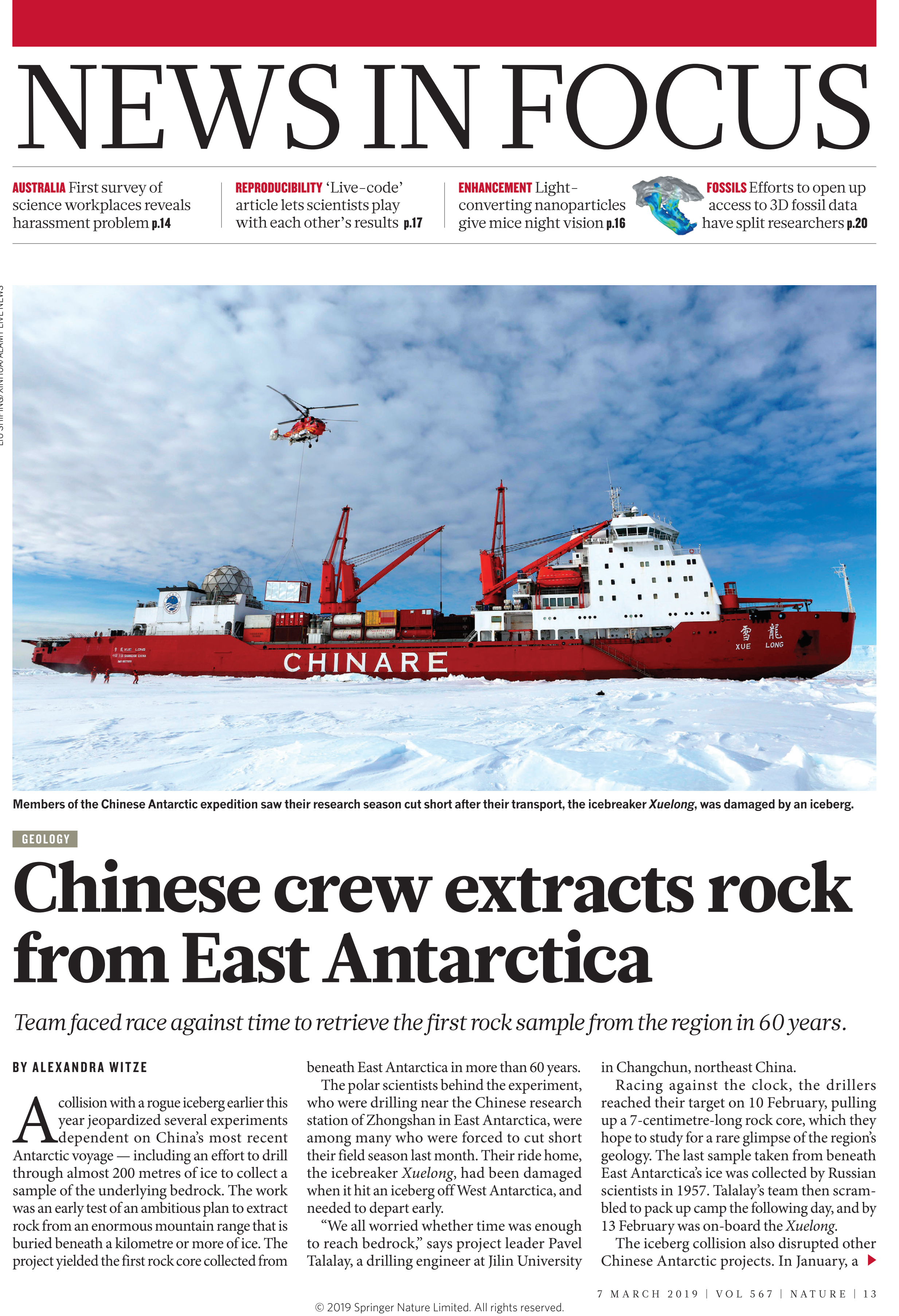 《Nature》刊文报道(Nature Vol 567, 2019)
