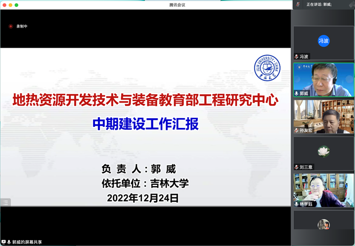 2022年12月24日,地热资源开发技术与装备教育部工程研究中心2022年技术委员会年会暨中期建设进展汇报会顺利召开,会议采用腾讯会议线上方式举行。中国科学院院士、中心技术委员会主任、吉林大学林学钰教授,中国工程院院士、吉林大学地学部学部长、吉林大学林君教授,中国工程院院士、中国地质大学(北京)校长孙友宏教授,中国地质大学(武汉)蒋国盛教授,中国地质大学(北京)刘宝林教授,中国地质调查局刘三意教授级高工,中国地质装备集团总公司刘跃进教授级高工,中国地调局浅层地温能研究与推广中心李宁波教授,天津地热勘察开发设计院赵苏民教授级高工,中国地质大学(北京)王广才教授,上海市地矿工程勘察(集团)有限公司黄坚教授级高工,中南大学隆威教授,中国地质调查局陶士先教授,中国地质大学(武汉)窦斌教授,上海市地矿工程勘察(集团)有限公司地热资源应用研究中心王庆华教授等出席了会议。