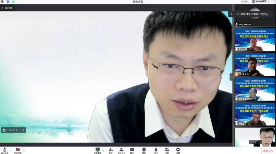 21世纪议程管理中心张贤处长、吉林大学科研院科技管理办公室副主任郭庆教授、yl23455永利集团长郭威教授出席线上会议并致辞,对项目的立项表示祝贺,并表示将全力支持项目的开展与实施。该环节由我院王清教授主持。