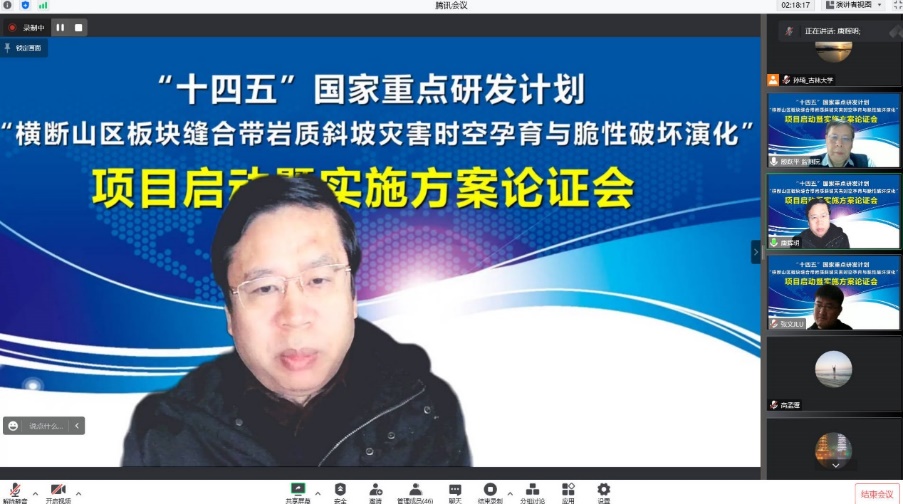 1月11日,由yl23455永利集团张文教授牵头承担的“十四五”国家重点研发计划青年科学家项目“横断山区板块缝合带岩质斜坡灾害时空孕育与脆性破坏演化”召开项目启动暨实施方案论证会,会议采用线上的形式举行。
