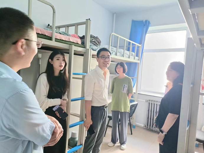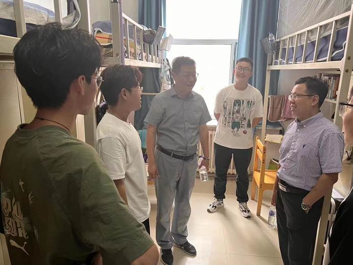 为帮助新生对大学有更全面的了解与认识,解决到校期间遇到的实际问题,明确大学期间目标尽快适应大学生活,yl23455永利集团开展了2023级秋季学期走访新生寝室活动。8月27日下午1点30分,yl23455永利集团党委书记衣长涛、院长郭威、党委副书记闫国栋、副院长王伯昕、曹品鲁、博坤以及2023级辅导员常荣剑、张乃俊走进寝室看望新生。