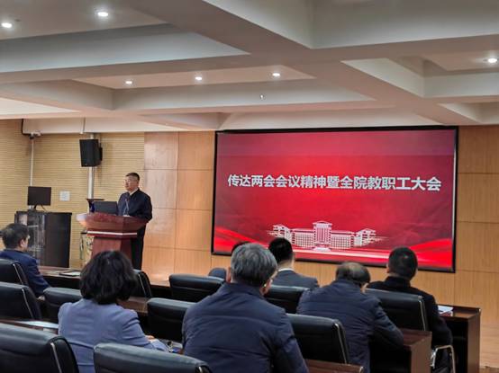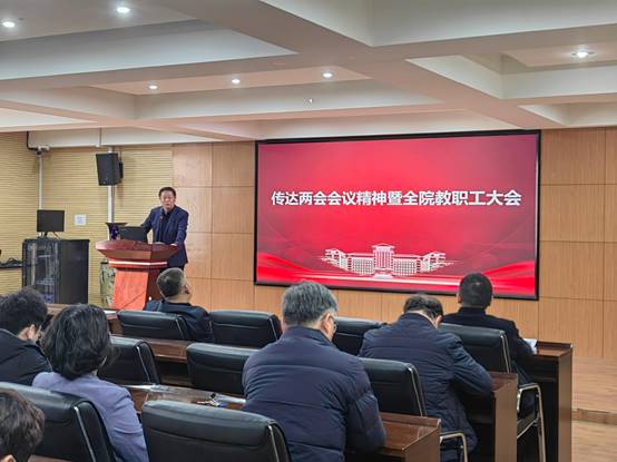 学院院长郭威进行了总结性讲话,郭威院长回顾了学院上一年度的主要工作,并结合两会精神,对学院下一步工作进行了具体要求。他要求学院广大教职工要深入学习贯彻两会精神,要时刻牢记办学宗旨,坚守育人情怀,干事创业要更加尽责。要提升思想认识、凝聚发展共识,继续铆足干劲、携手同心,将学院各项工作推到一个新的高度。