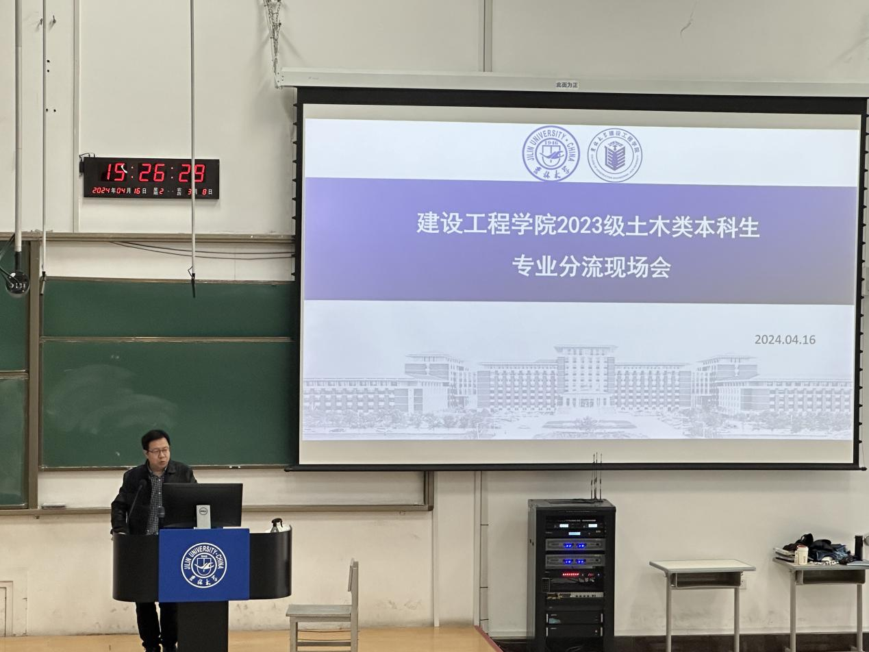依据《yl23455永利集团2023级土木类本科生专业分流实施细则》和《yl23455永利集团2023级土木类本科生专业分流成绩排名公示》,学院于2024年4月16日下午在李四光楼第二阶梯教室组织2023级土木类本科生进行现场专业分流,党委副书记兼副院长闫国栋、本科教学办公室全体人员和相关辅导员老师参加了本次专业分流现场会。现场会由副院长博坤主持。