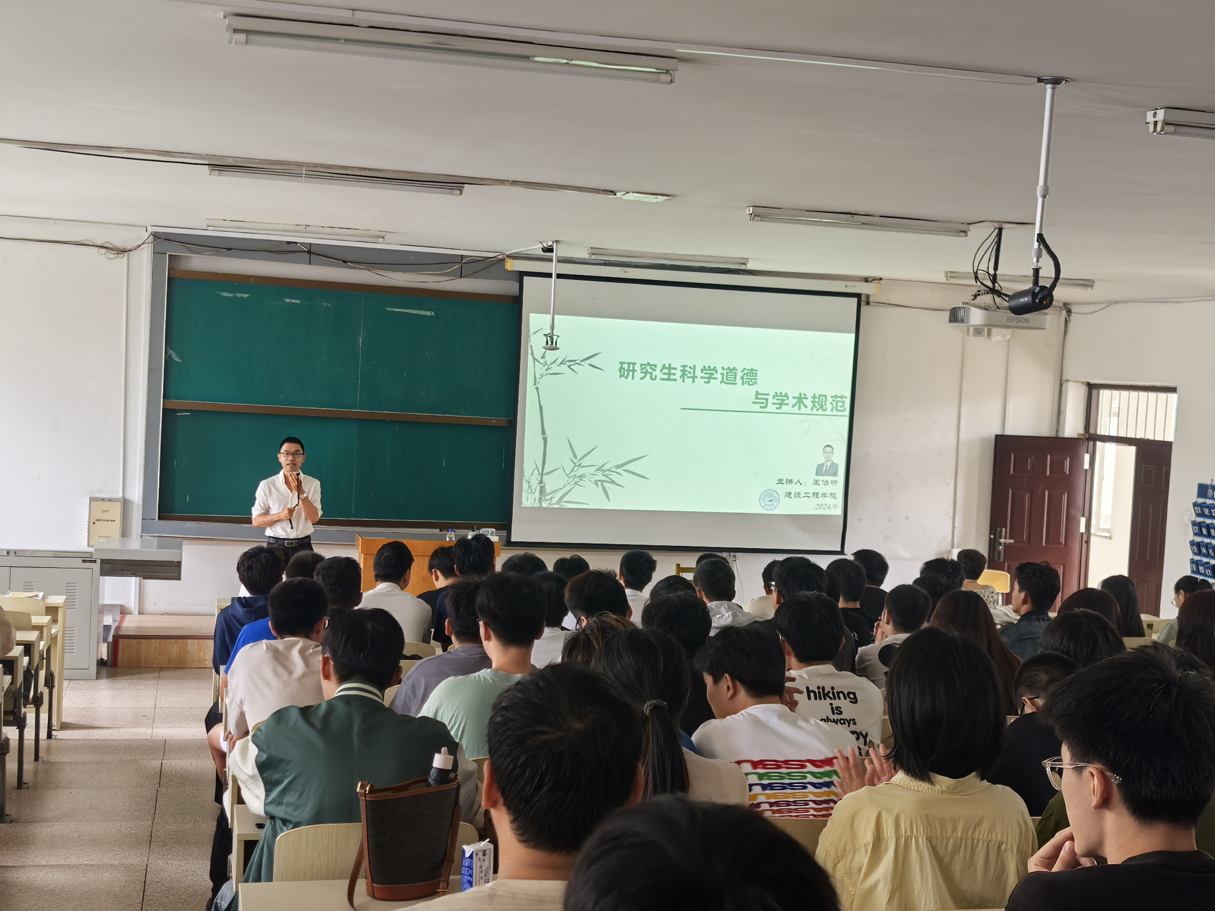 为进一步做好研究生科学道德和学术规范教育,引导研究生牢固树立学术诚信与学术规范意识,yl23455永利集团副院长王伯昕教授于9月4日上午在水工楼518教室讲授了主题为“科学道德与学术规范”教育讲座。研究生综合办公室王慧娣老师、汤海燕老师、学院2024级全体研究生新生共同学习了这场富有深刻教育意义的讲座。