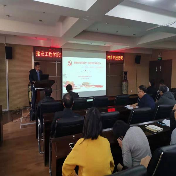 根据学校“不忘初心、牢记使命”主题教育部署安排,yl23455永利集团党委于20191031日在水工楼325报告厅举办了主题为新思想引领新时代、新使命呼唤新作为的专题党课。学校主题教育第14指导组组长苗艺璇同志、联络员宋博洋同志莅临党课现场指导,学院领导班子以及各党支部委员参加了本次党课学习。党课由学院党委副书记衣长涛同志主讲。