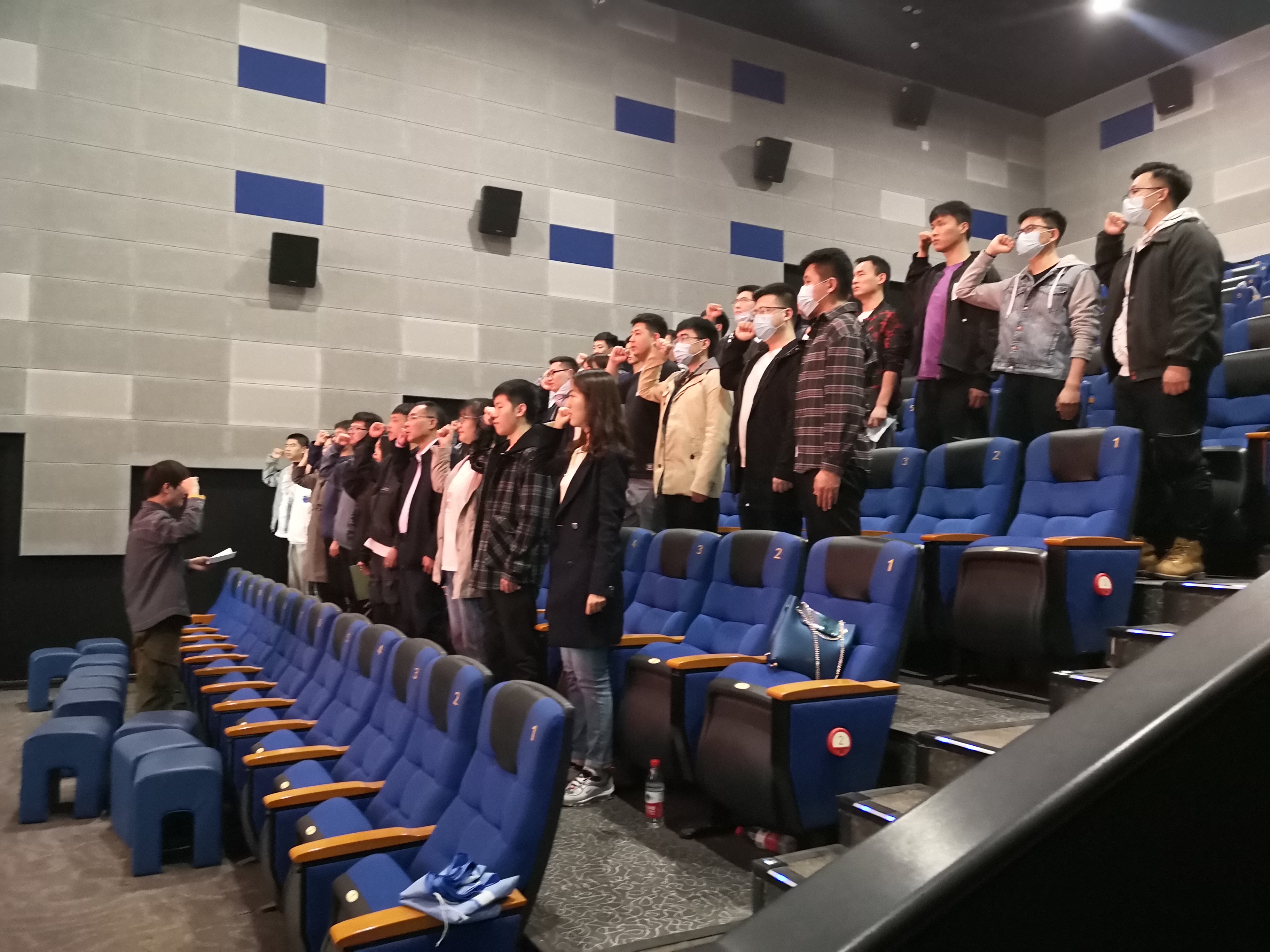观影结束后,院党委副书记、纪委书记闫国栋,研究生思政秘书汤海燕与硕士生党员共同重温入党誓词。入党誓词是行动指南,是共产党人的座右铭,不断重温,终身践行,前进路上,对照承诺,时时检视自我,不断校正航向,方能行稳致远。想想精气神有没有减弱,查查警觉性有没有降低,看看脚下路有没有走歪……不断重温的意义,正在于此。在硕士学生党支部书记马秋阳同志的带领下,全体党员一起高举右手,面对鲜红的党旗,再次庄严宣誓:“我志愿加入中国共产党……随时准备为党和人民牺牲一切,永不叛党。”铿锵恢宏的誓词,强烈震撼着在场的每一位党员,一字一句,神圣而豪迈,铮铮誓言,体现了党员同志们对中国共产党的无限忠诚,坚定了入党使命,奋斗初心。