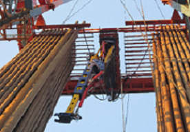 研发团队对深部大陆科学钻探装备开展攻关研究,在自主研发和借鉴国外先进经验基础上,经过四年的潜心研究,突破了多项重大基础理论与关键技术,在结构设计、控制方法、理论研究方面取得了重大成果,包括新型顶驱液压系统、高精度送钻系统、自动化摆排管装备、全液压智能化铁钻工、全液压自动猫道等,见图3-图7。2017年大陆深部科学钻探装备关键技术及应用获吉林省科技发明一等奖。