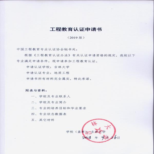 中国工程教育专业认证协会于2018年8月7日发布了“关于开展2019年工程教育认证申请工作的通知”, 我院地质工程专业属于受理认证的专业类。通知发布后,8月13日,学院组织召开了2019年地质工程专业工程教育认证工作组第一次会议,专业认证工作正式启动。工作组分别设置了学生工作组、培养目标工作组、毕业要求工作组、持续改进工作组、课程体系工作组、师资队伍工作组、支持条件工作组、本科教学事务工作组、科研事务工作组、学工事务工作组、对外联络组和在校学生组等工作小组。按照第一阶段的工作目标,完成《工程教育认证申请书》,开展了相关工作。结合我院地质工程专业上轮专业认证的情况,以及近两年的持续改进措施、目前专业建设和专业改革情况,按照申请书的编写要求,开展了申请书的编写工作,共召开了四次工作会议,完成了申请书三稿的编写和修订工作。