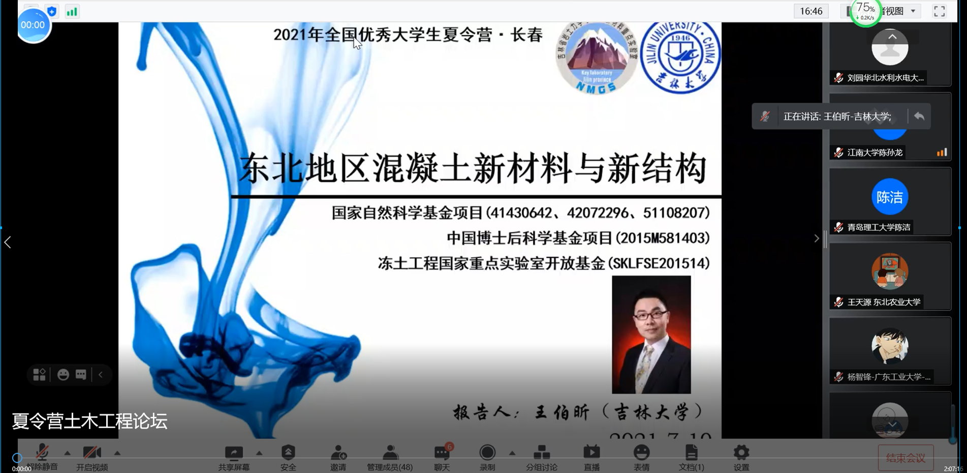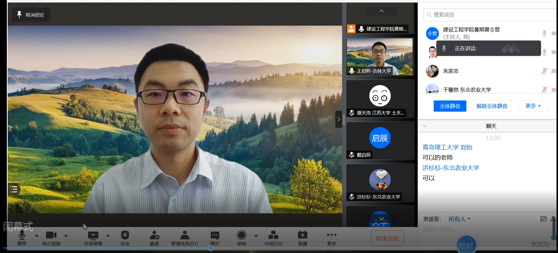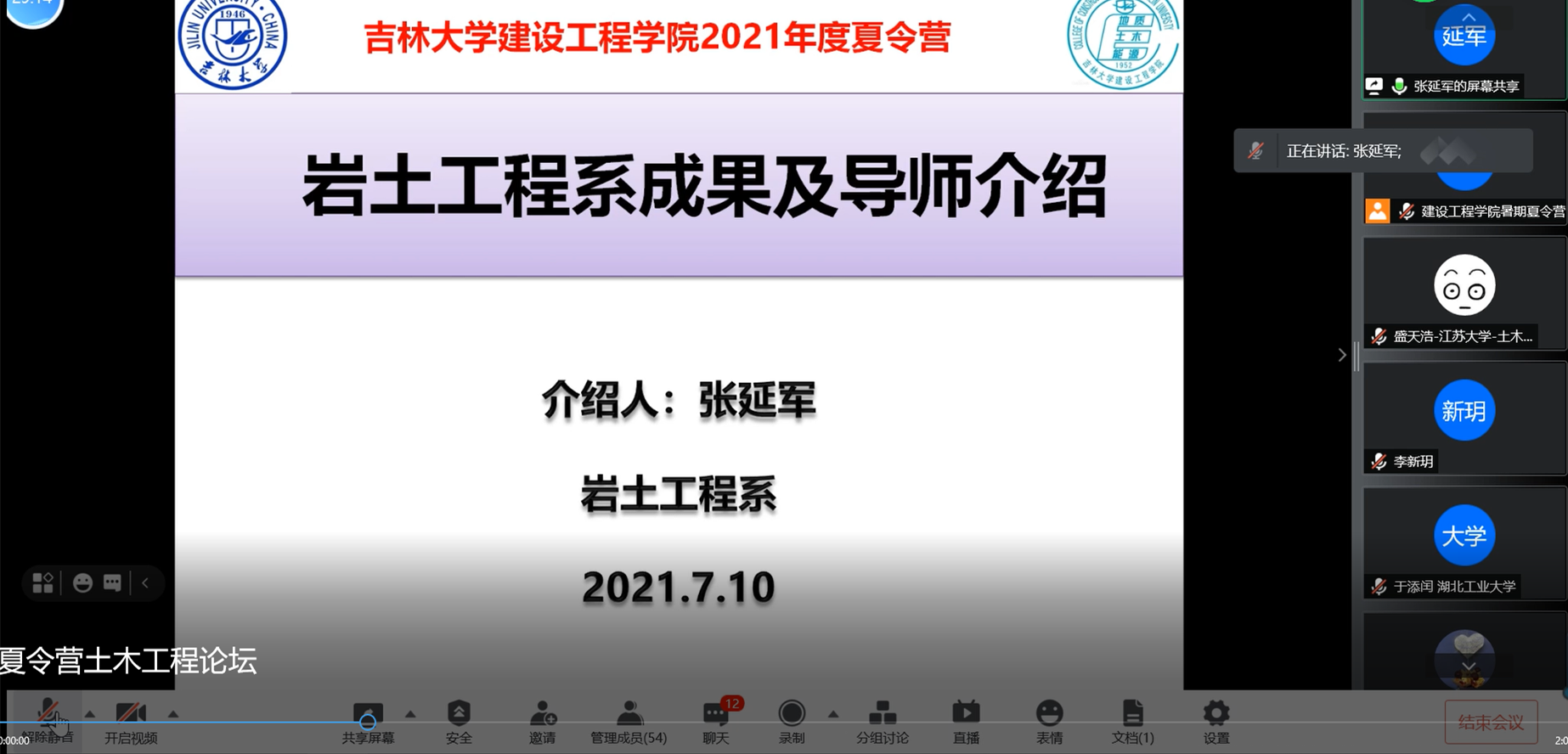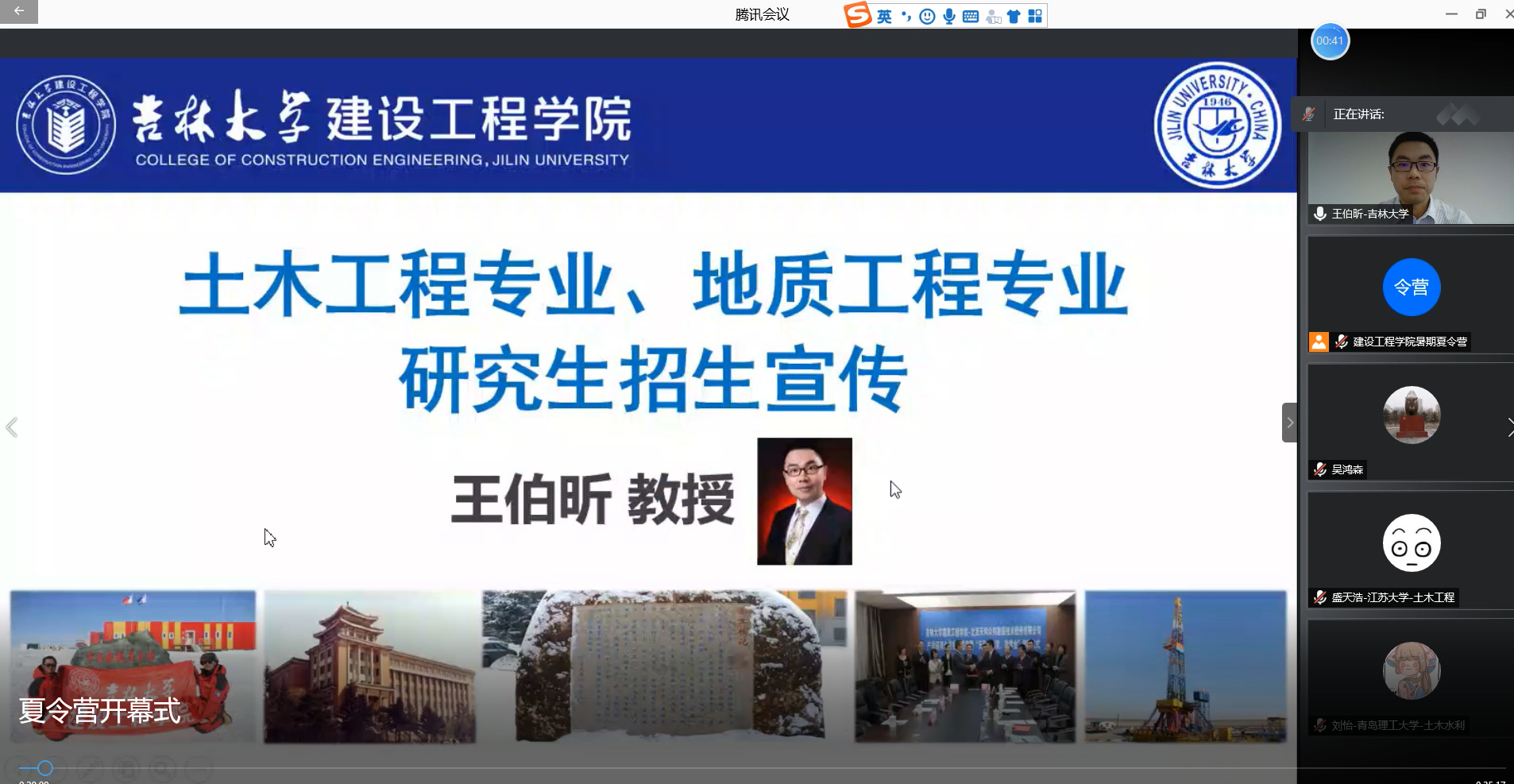 7月10日下午,学院举办地质工程学术论坛、土木工程学术论坛,学院地质工程专业、土木工程专业八位教授分别为营员同学做学术讲座,与营员线上交流。