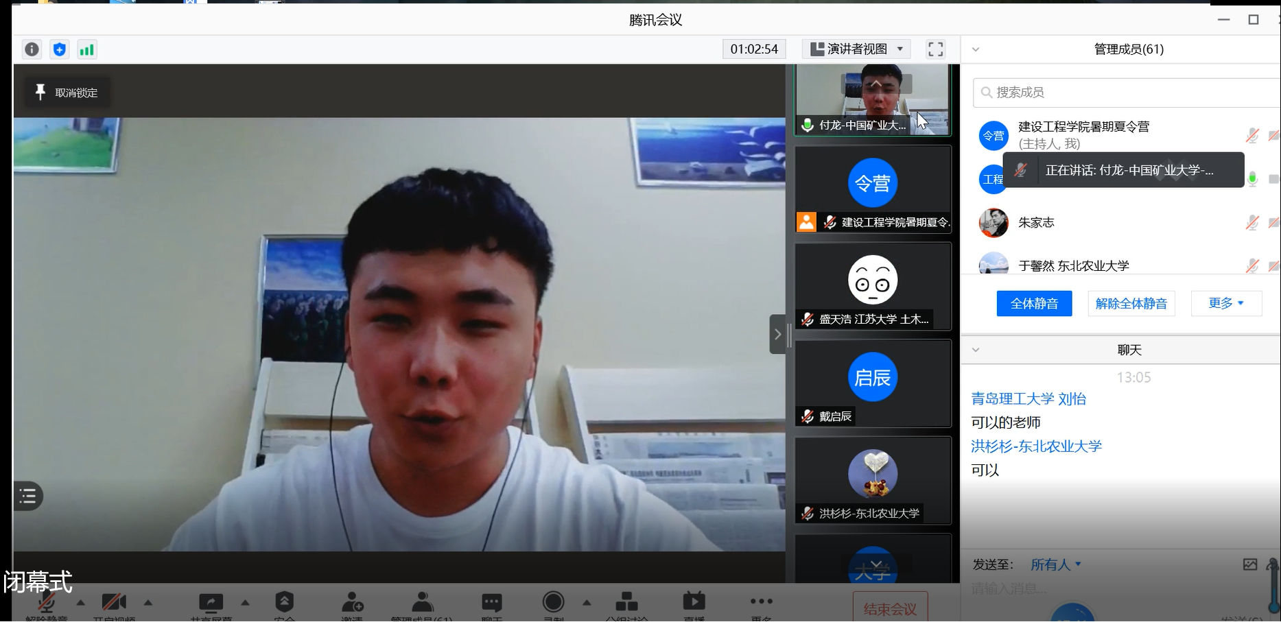 来自中国矿业大学地质工程专业的付龙同学、yl23455永利集团李府昂同学先后对参加此次夏令营的感受进行了发言。