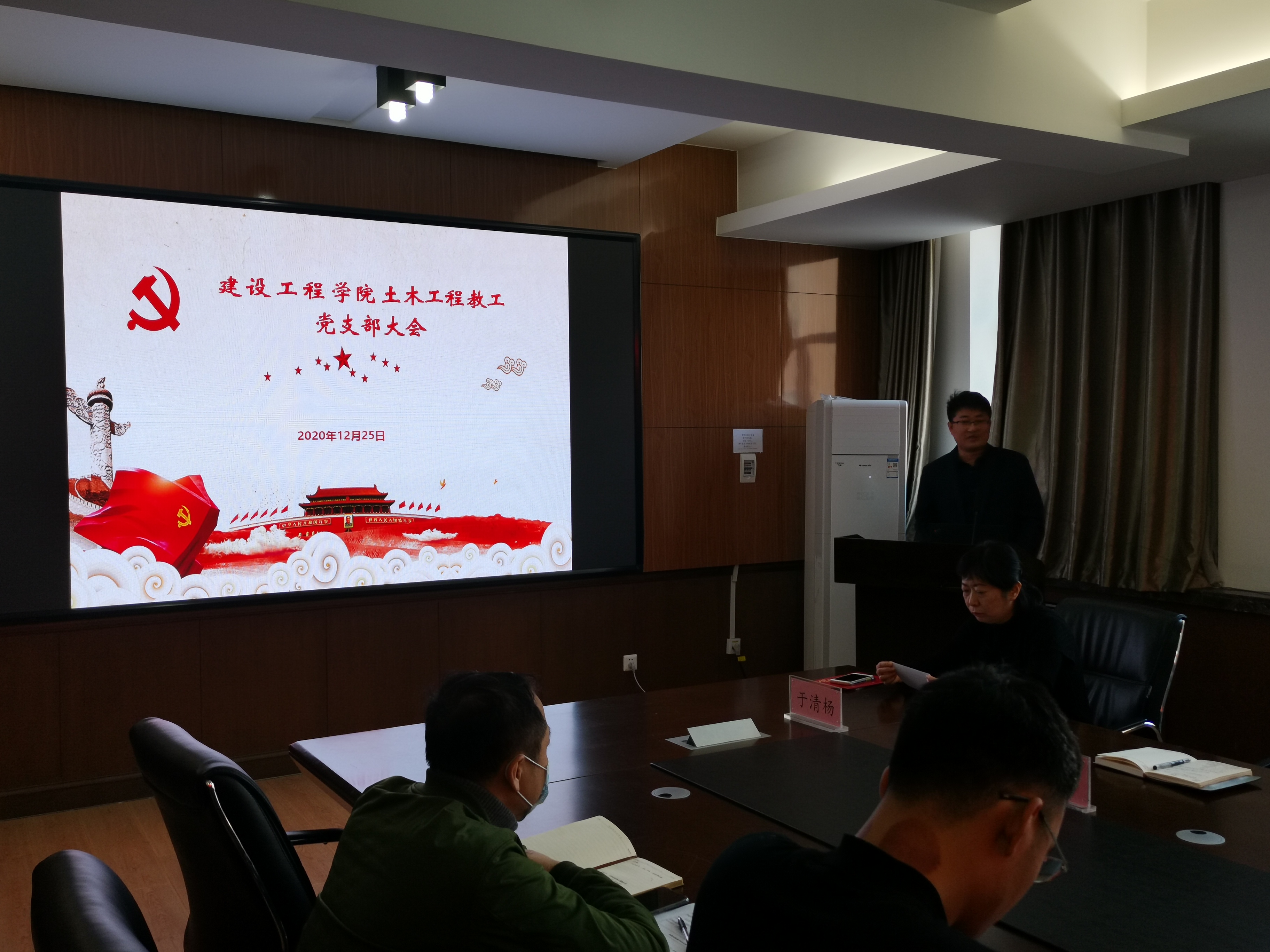 2020年12月25日yl23455永利集团土木工程教工党支部召开党员大会,校党委常委、副校长边铁出席会议,党委组织部、yl23455永利集团相关同志参加了会议。会议由yl23455永利集团土木工程教工党支部书记于清杨主持。
