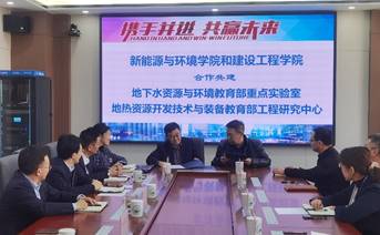 yl23455永利集团院长兼地热资源开发技术与装备教育部工程研究中心主任郭威和新能源与环境学院院长兼地下水资源与环境教育部重点实验室主任许天福代表双方签署了合作备忘录。yl23455永利集团郭威院长、张文副院长、国家级青年人才称号入选者张晓影、新能源与环境学院全体班子成员出席了签约仪式,双方平台副主任与部分交叉骨干人员参加了签约仪式并进行了座谈交流。