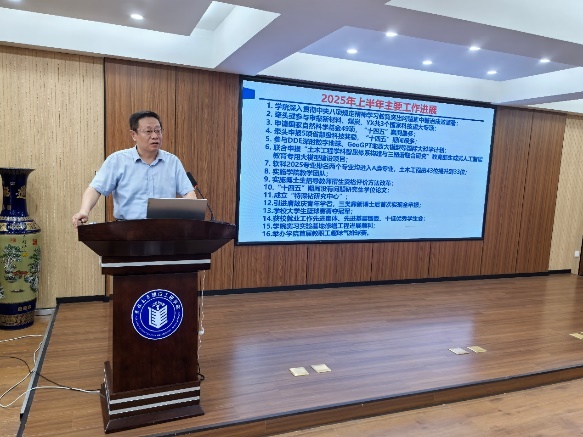 院长郭威从深入贯彻中央八项规定精神学习教育活动开展、科研成就、学科建设、人才培养等方面通报了学院2025年上半年主要工作进展。