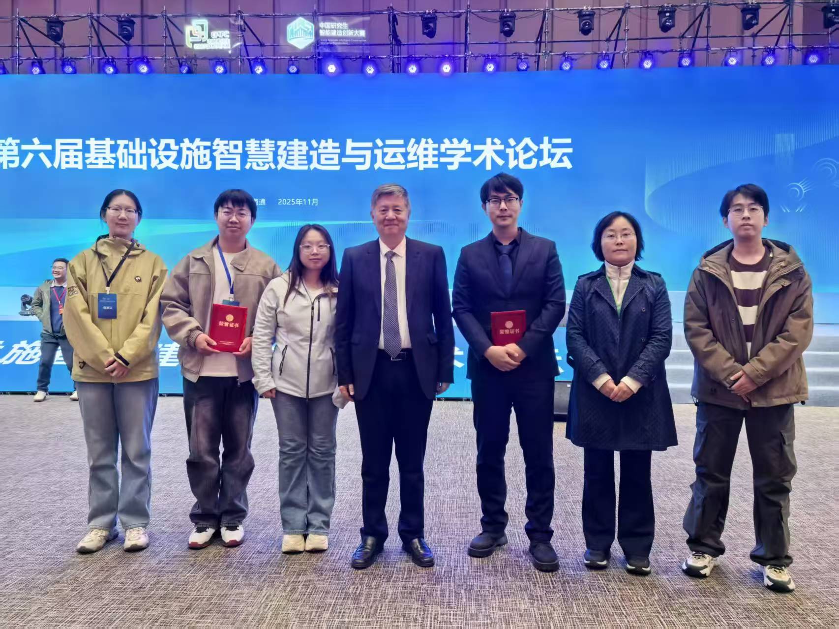 近日,首届中国研究生智能建造创新大赛全国总决赛在江苏南通圆满收官。由吉林大学土木工程与地质工程两个学科5名研究生组成的跨学科团队,在我校智能建造领域尚处初步尝试阶段的背景下,凭借作品《基于YOLOv8与导电水泥基材料的双重监控方案》从全国225所高校及科研院所的1316支参赛队伍中脱颖而出,斩获二等奖,实现了我校在智能建造高端赛事上的突破性进展,更以双学科融合的创新实践,为学校在该领域的科研与人才培养探索提供了鲜活样本。